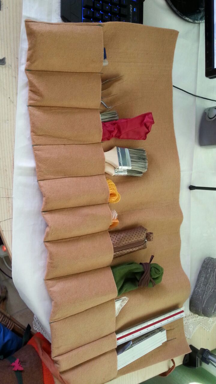Questi “rotoli” sono fatti di lana infeltrita (o più comunemente feltro) e sono molto utili per custodire ogni genere di attrezzo che potrebbe rompersi,sporcarsi o semplicemente perdersi!