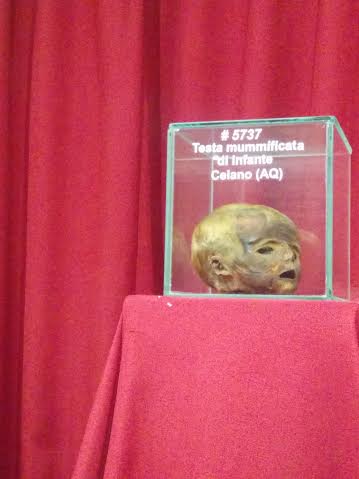 Questa piccola testa infatti apparteneva ad un neonato. Qualche anno fa, durante una disputa tra contadini che litigavano per i confini del loro terreno, questa testolina è stata lasciata su un muretto da uno dei due per intimidire l’avversario. Ovviamente sono state subito avvertite le autorità competenti ad è stato chiamato anche il professor Luigi Capasso, antropologo fisico, direttore del museo universitario. Visto che la mummificazione di un corpo richiede diverso tempo si è sospettata subito l’antichità della piccola testa, ed infatti il professore ha decretato che la creatura è stata uccisa intorno agli anni venti dello scorso secolo.