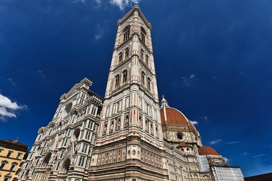 Ma la pittura non fu l’unica arte di Giotto, si dedico anche all’architettura durante l’edificazione della basilica di santa Maria del Fiore a Firenze, dove si concentrò sul campanile. inizialmente il suo progetto lo voleva alto 110 metri ma con una base troppo piccola per sostenere il reale peso della costruzione, così l’artista suscitò le critiche dei fiorentini. Non fece in tempo a vedere la sua opera completata, prima di morire infatti era stato completato solo il primo livello del campanile.