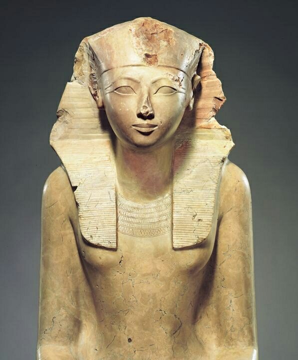 Hatshepsut, (1513-1507 a. C) Quinta tra i sovrani della XVIII dinastia è generalmente considerata come uno dei migliori faraoni della storia egizia, avendo inoltre regnato molto più a lungo di ogni donna appartenente a tutte le altre dinastie native dell’Egitto. Prima di lei fu faraone solo Nefeusobek (letteralmente bellezza di sobek, dio coccodrillo) che regnò per poco meno di 4 anni alla morte del marito nella XII dinastia, circa 1797-1793. Hatshepsut regnò per molti anni, promosse grandi opere edilizie e tenne il regno d’Egitto in pace cercando di riguadagnare importanza nei paesi esteri, persa durante il precedente “periodo Hyksos”. Si può dire che fu la prima grande donna di cui abbiamonotizia!